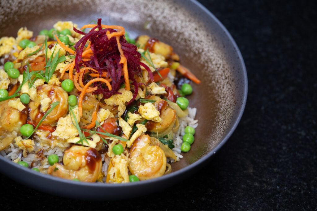 El resultado: un arroz aromático, con mariscos, especias y notas dulces que te transportan directo al sudeste asiático.